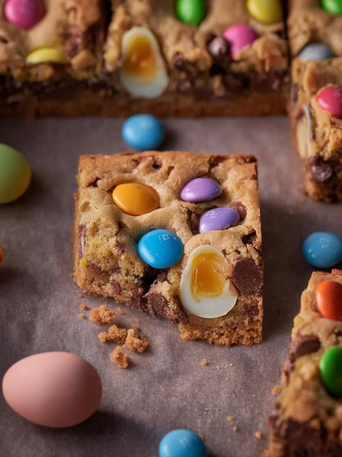 Delicious chocolate chip cookie bars loaded with Easter treats, perfect for celebrations!