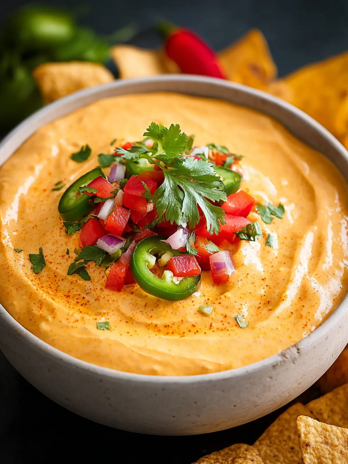 For a nutrient boost and some texture, chopped bell peppers or jalapeños make fantastic additions. They not only add color but also enhance the nutritional profile, making your creamy high protein queso dip even more wholesome.