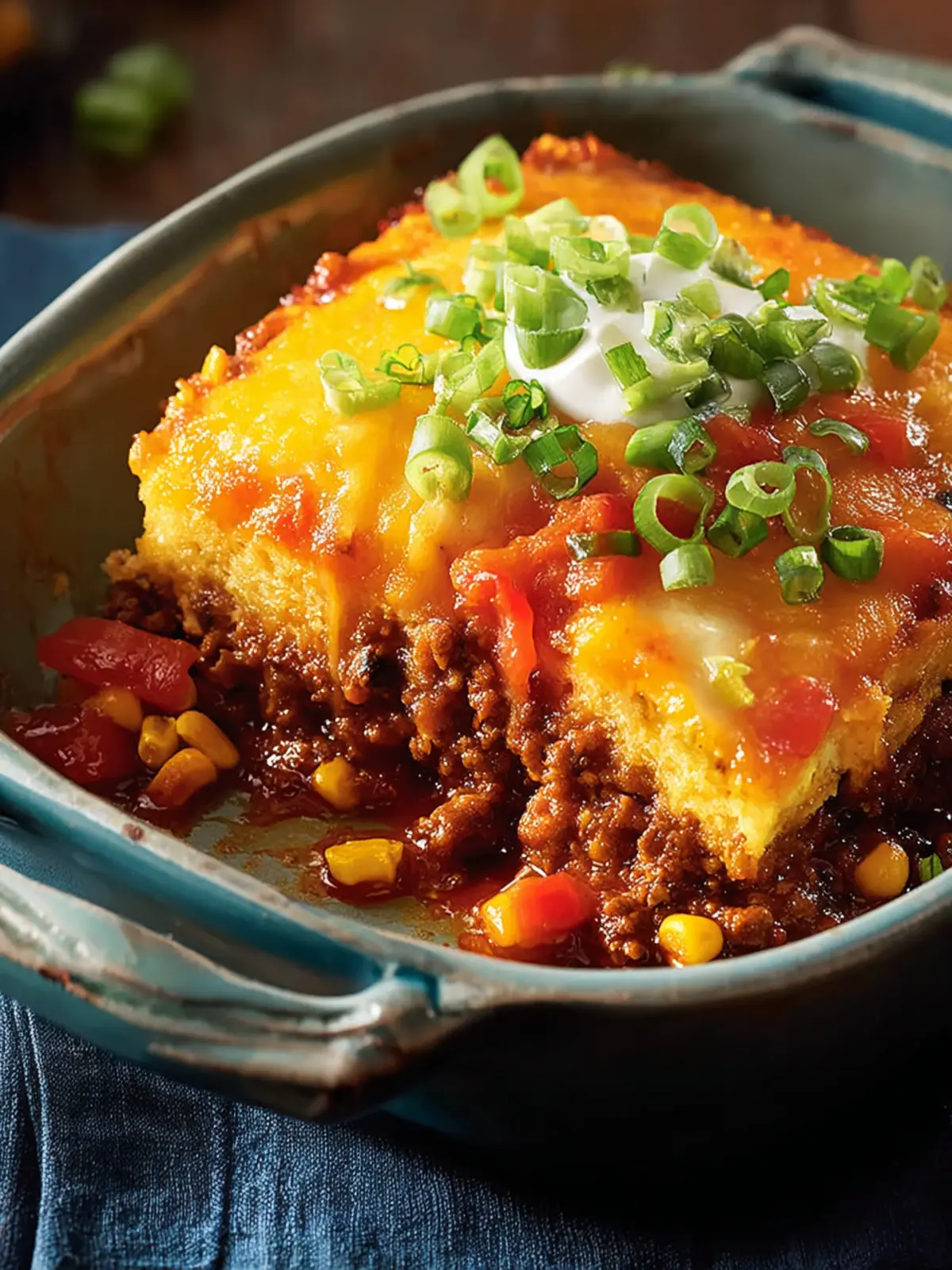 A delicious and hearty Taco Cornbread Casserole that combines the flavors of tacos with a cornbread topping.