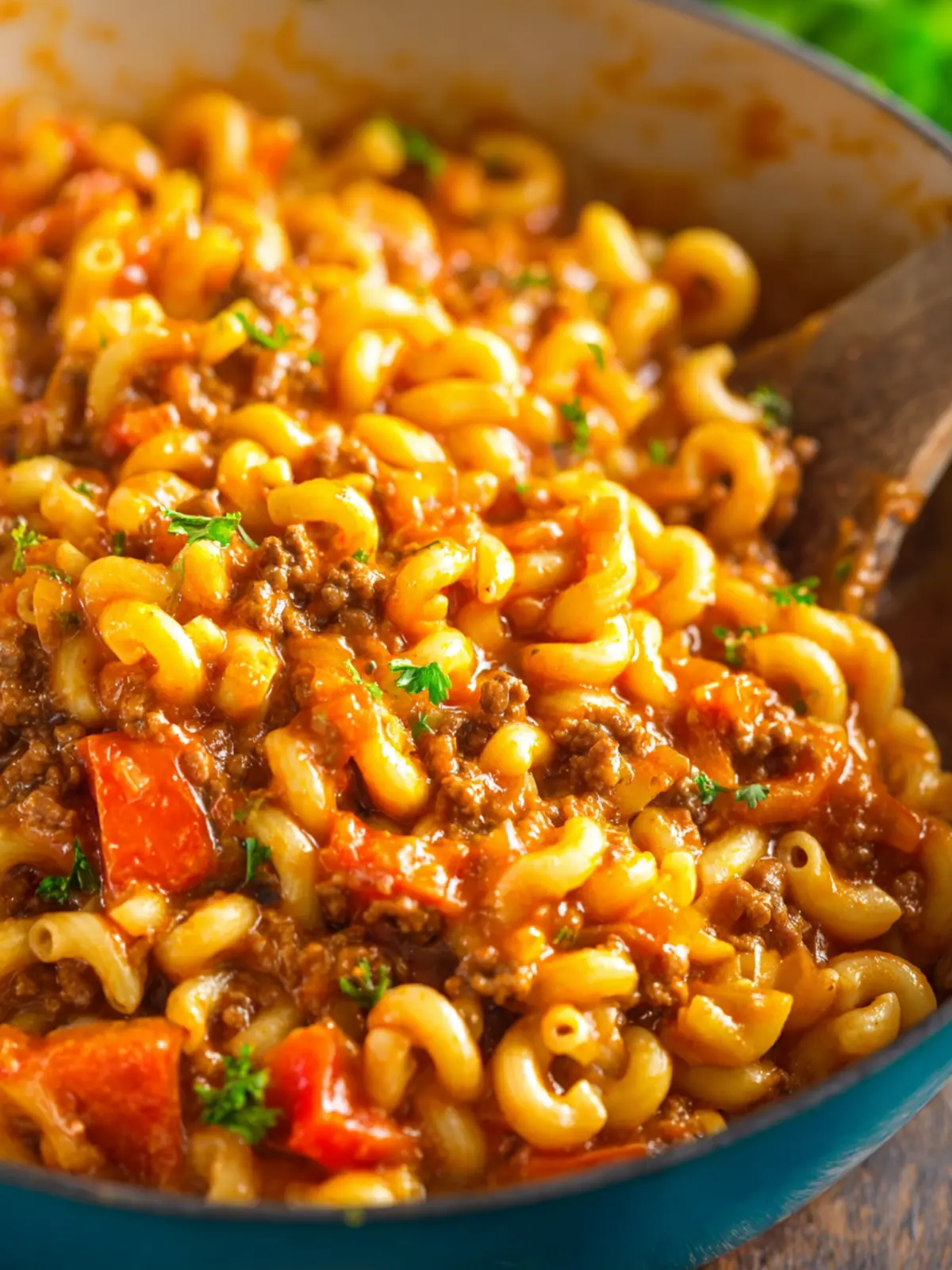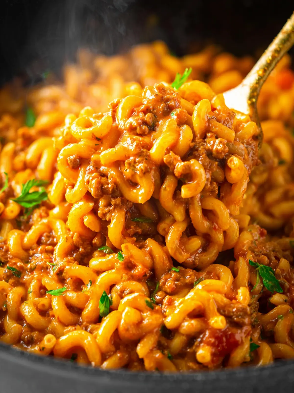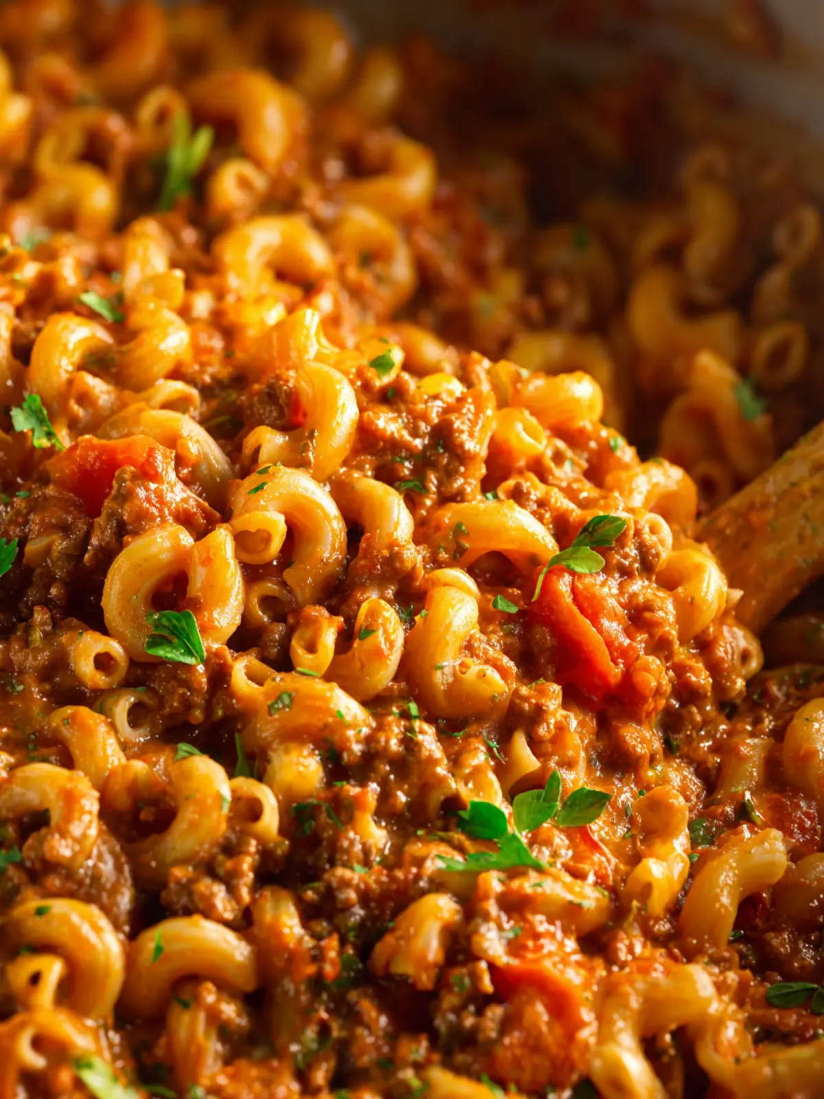 A comforting and cheesy pasta dish made with ground beef and elbow macaroni.