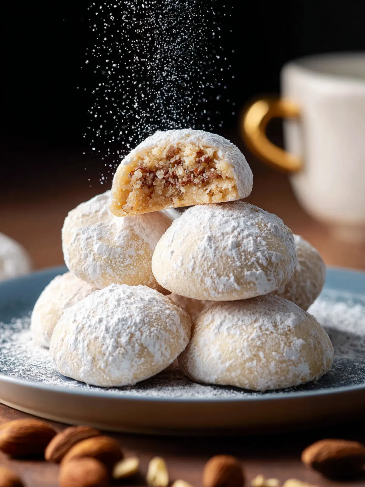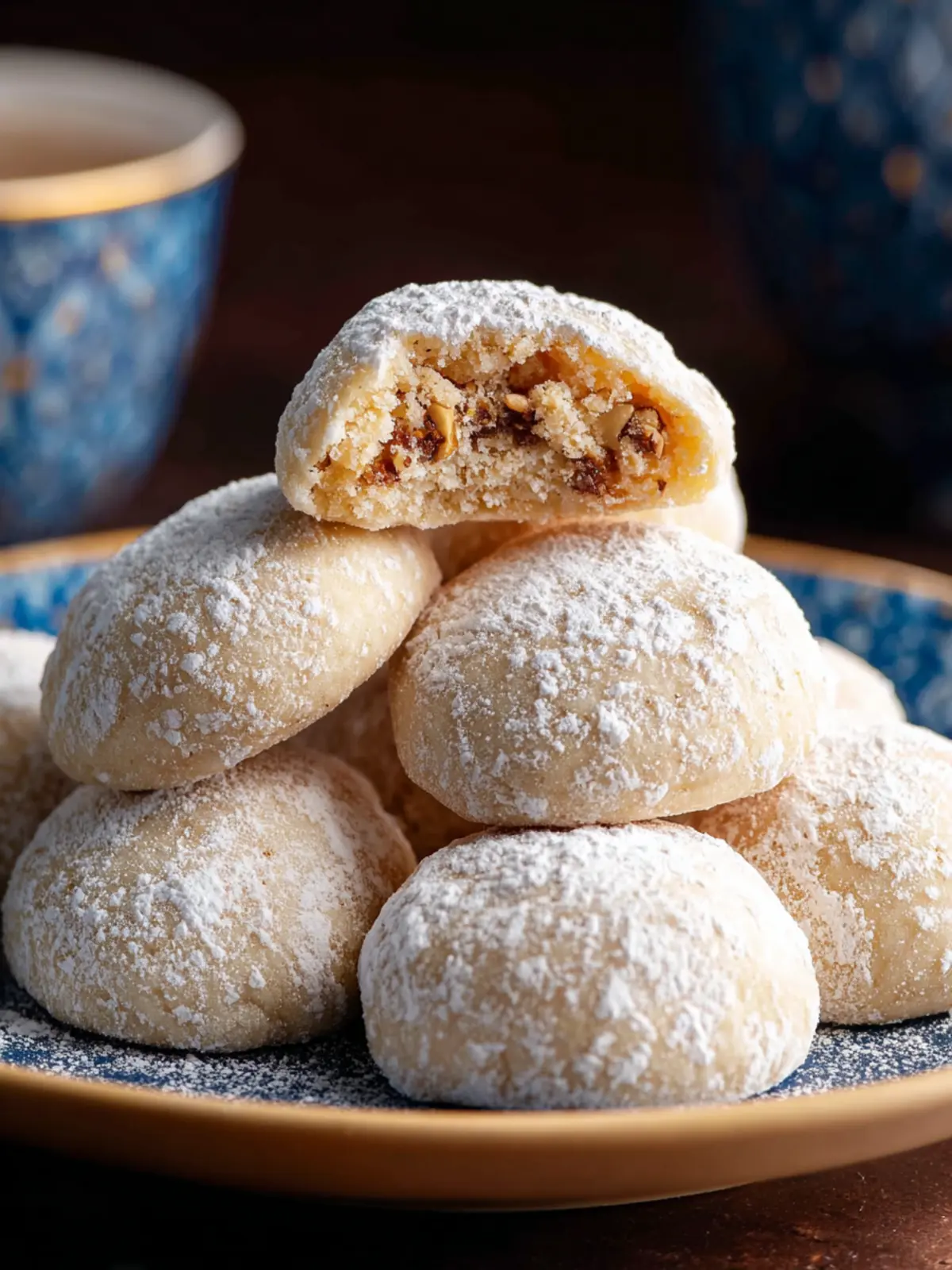 Deliciously soft cookies made with unsalted butter and finely chopped pecans, rolled in powdered sugar.