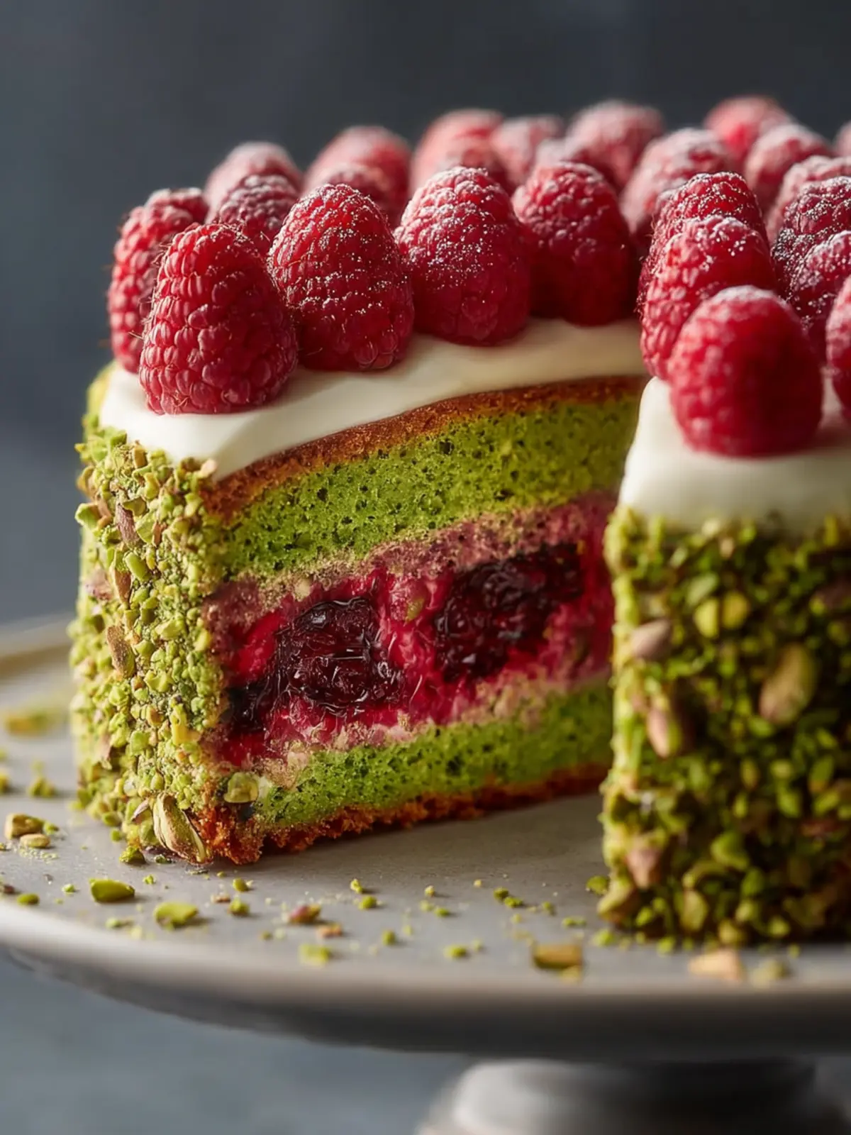 Pistachio Raspberry Layer Cake