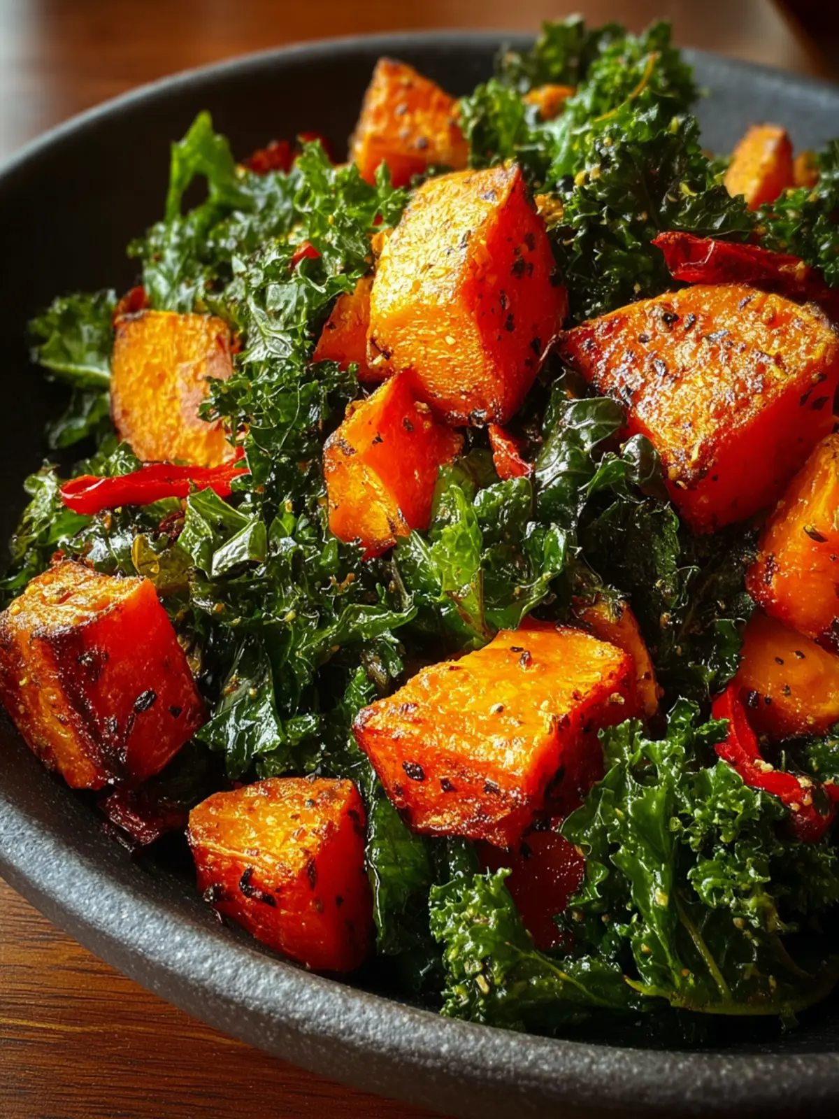 Nutritious Goodness: This dish is not just about taste. Sweet potatoes are rich in vitamins A and C and fiber, while kale is a powerhouse of nutrients including calcium and iron. Together, they create a balanced meal that fuels your body and boosts your energy levels.