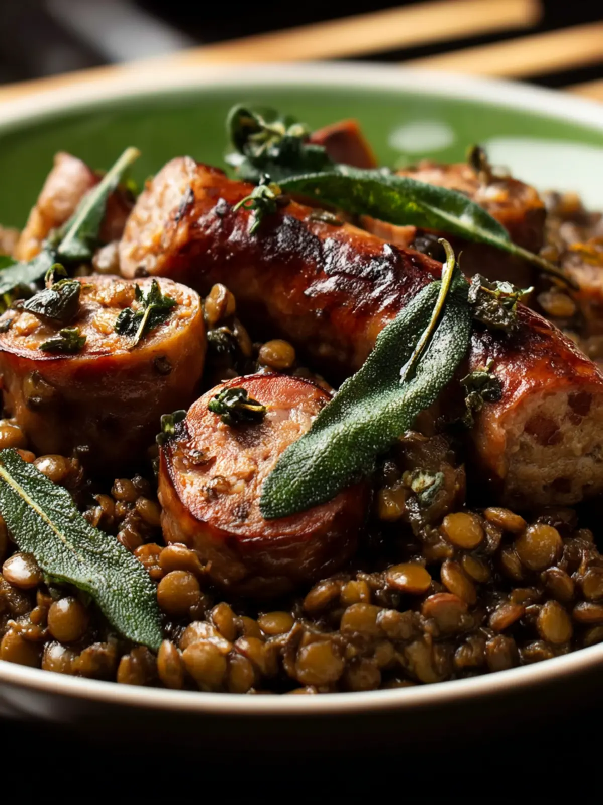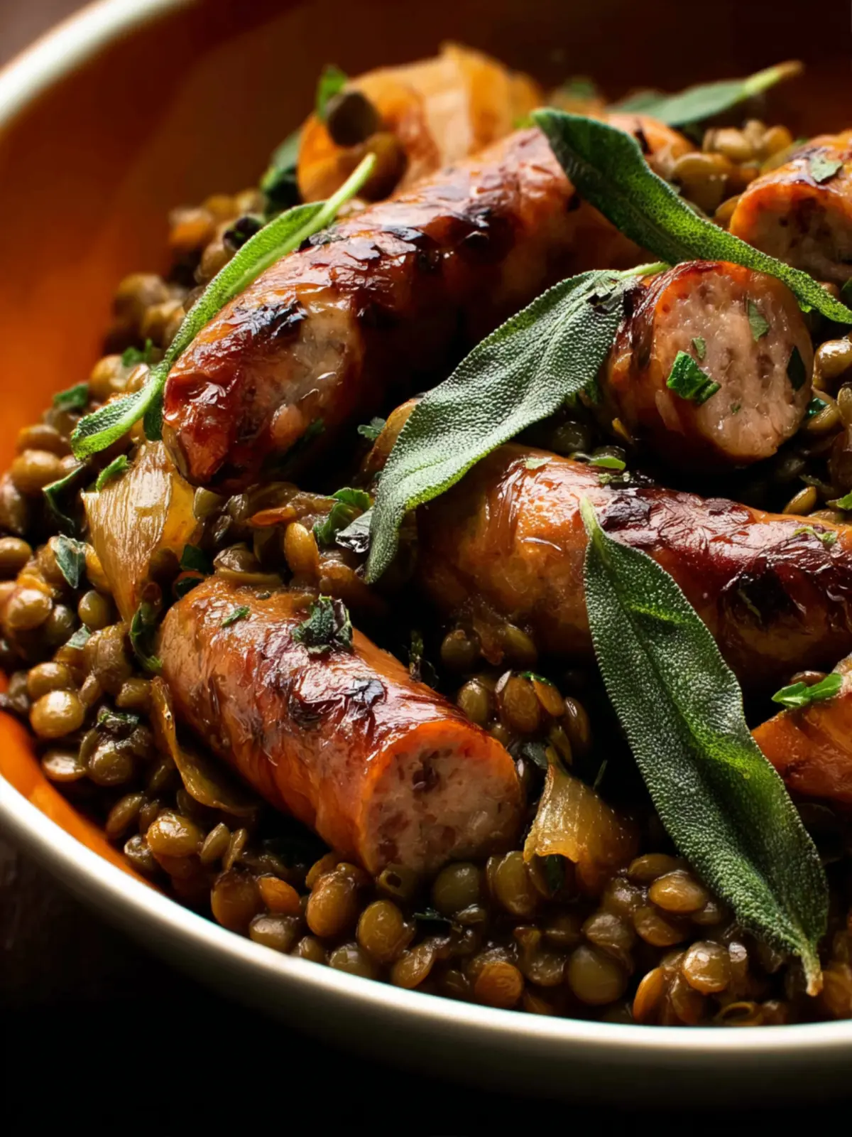 Sausage and Lentils with Fried Sage: A Cozy, Flavorful Delight